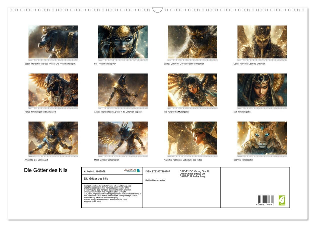 Die Götter des Nils (Wandkalender 2026 DIN A2 quer), CALVENDO Monatskalender
