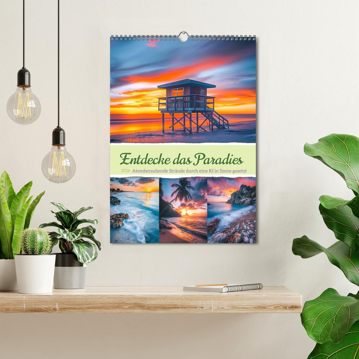 Entdecke das Paradies - Atemberaubende Strände durch eine KI in Szene gesetzt (Wandkalender 2026 DIN A3 hoch), CALVENDO Monatskalender