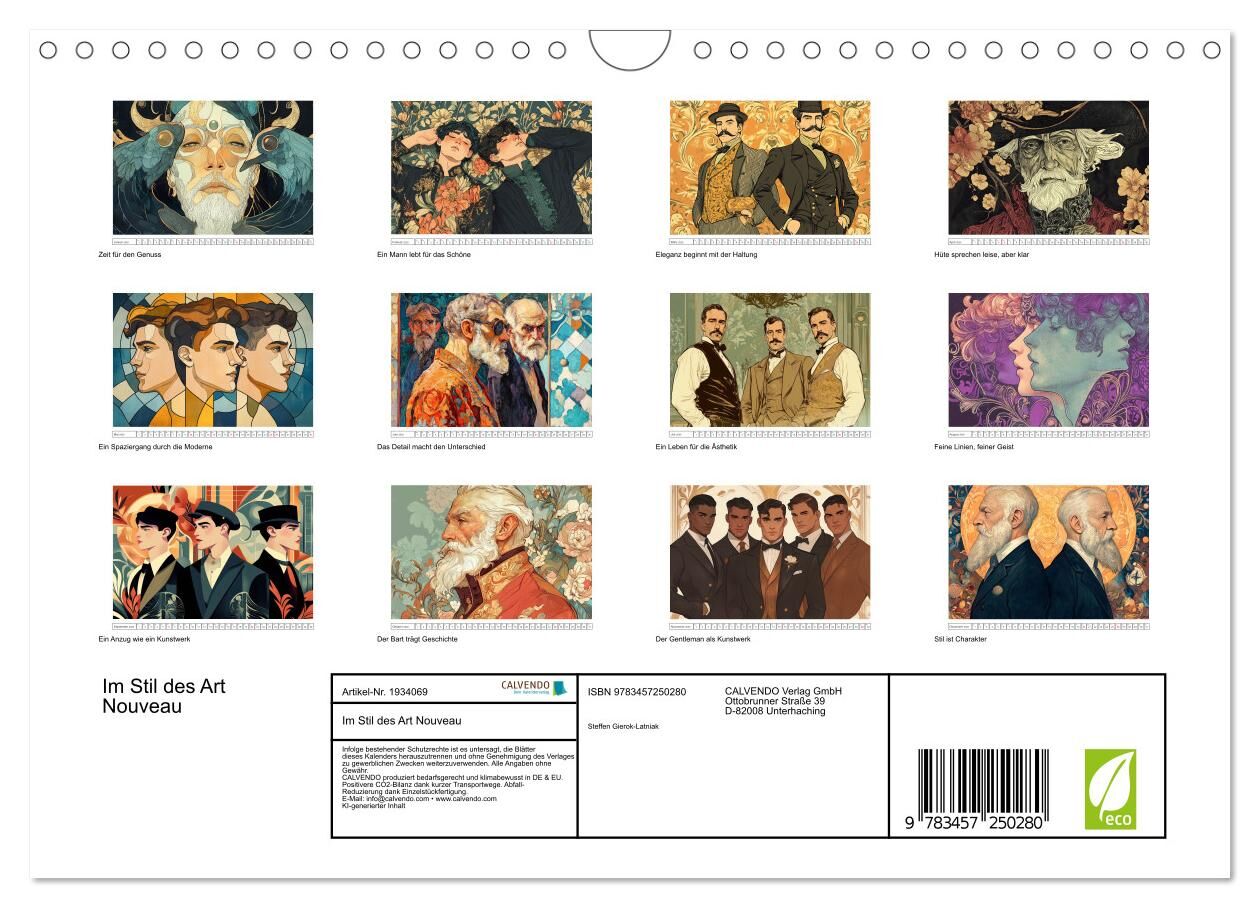 Tauchen Sie ein in die faszinierende Welt des Art Nouveau und erleben Sie die stilvolle Lebensweise von Männern einer vergangenen Epoche. Unser einzigartiger Kalender vereint zeitlose Illustrationen mit dem charakteristischen Charme des Jugendstils: geschwunge...