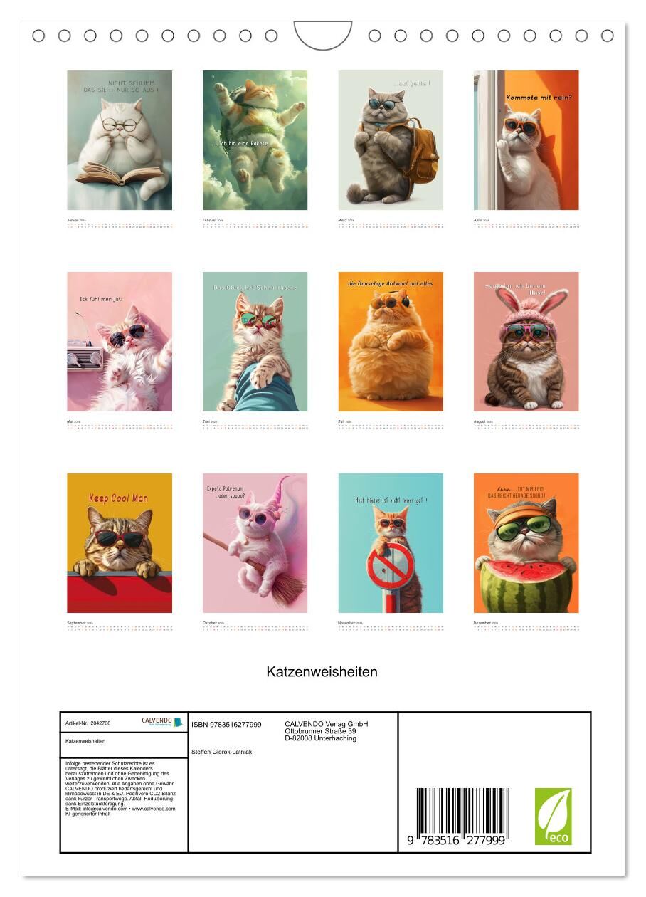 Katzenweisheiten (Wandkalender 2026 DIN A4 hoch), CALVENDO Monatskalender