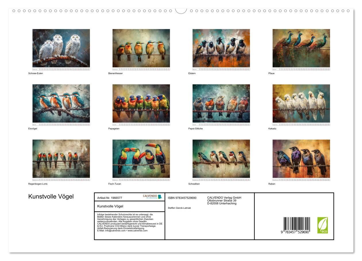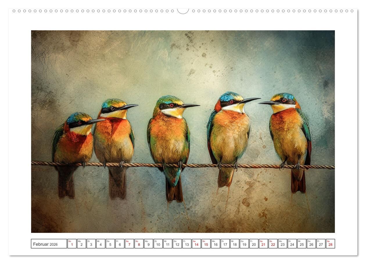 Kunstvolle Vögel (hochwertiger Premium Wandkalender 2026 DIN A2 quer), Kunstdruck in Hochglanz
