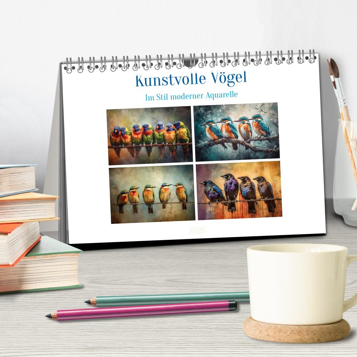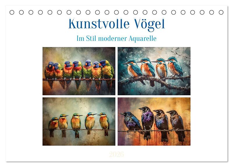 Kunstvolle Vögel (Tischkalender 2026 DIN A5 quer), CALVENDO Monatskalender