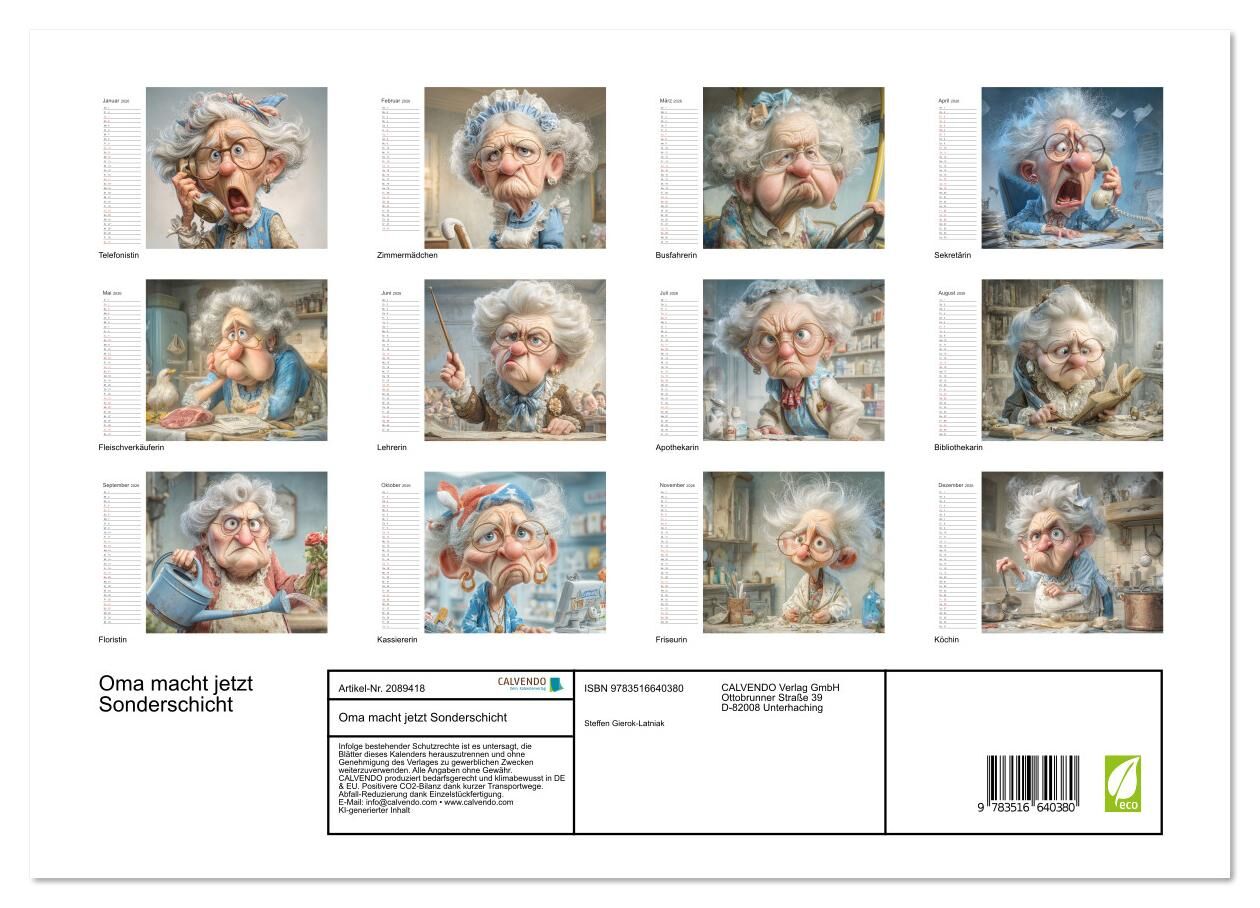 Oma macht jetzt Sonderschicht (hochwertiger Premium Wandkalender 2026 DIN A2 quer), Kunstdruck in Hochglanz