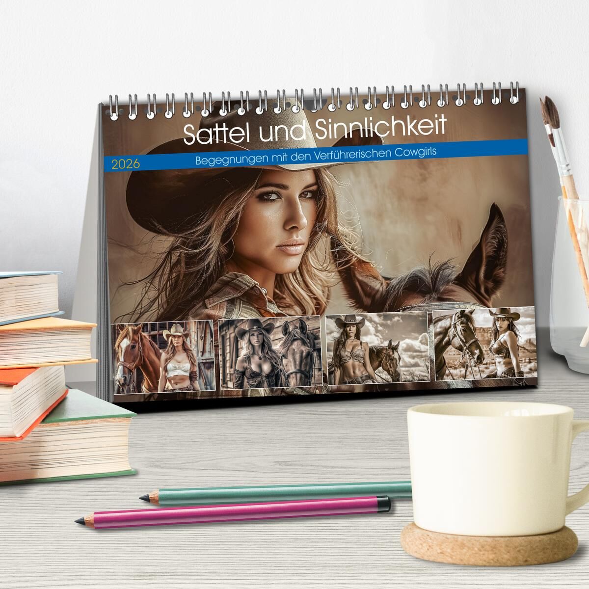 Sattel und Sinnlichkeit - Begegnungen mit den Verführerischen Cowgirls (Tischkalender 2026 DIN A5 quer), CALVENDO Monatskalender
