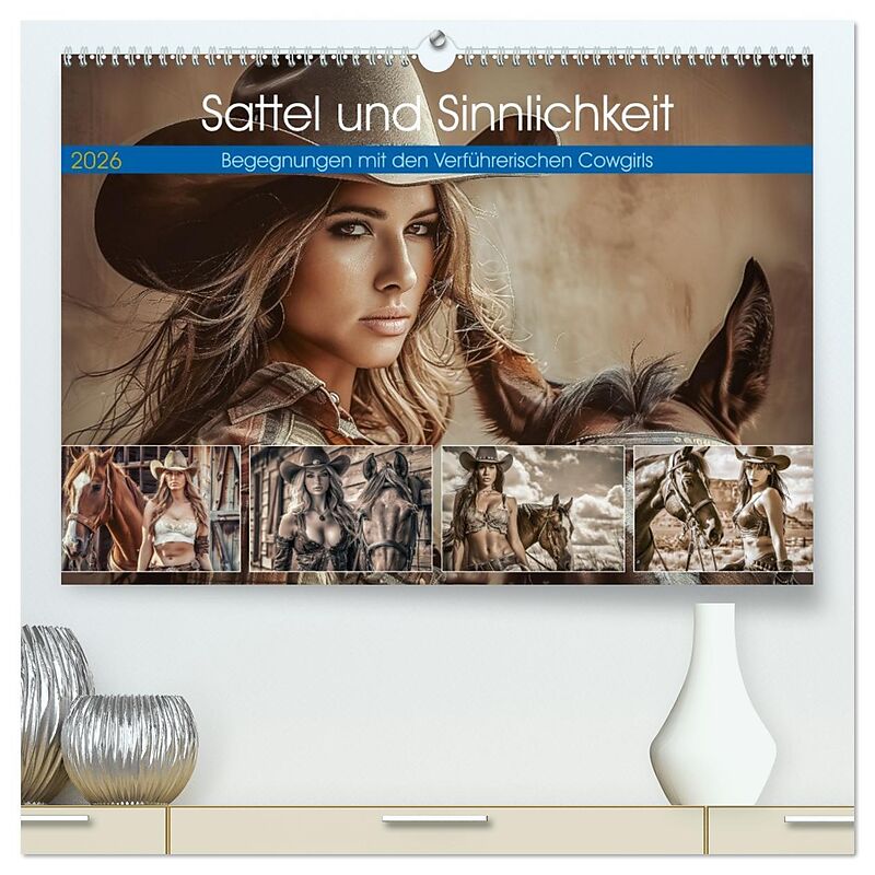 Sattel und Sinnlichkeit - Begegnungen mit den Verführerischen Cowgirls (hochwertiger Premium Wandkalender 2026 DIN A2 quer), Kunstdruck in Hochglanz