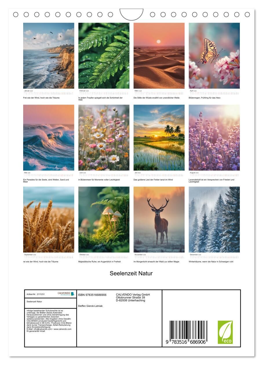 Tauche ein in die stillen Wunder unserer Erde von funkelnden Tautropfen im Frühling bis hin zu goldenen Feldern im Sommer, von mystischen Nebelwäldern im Herbst bis zu glitzernden Winterträumen. Dieser Kalender begleitet dich mit 12 zauberhaften Naturmomenten,...