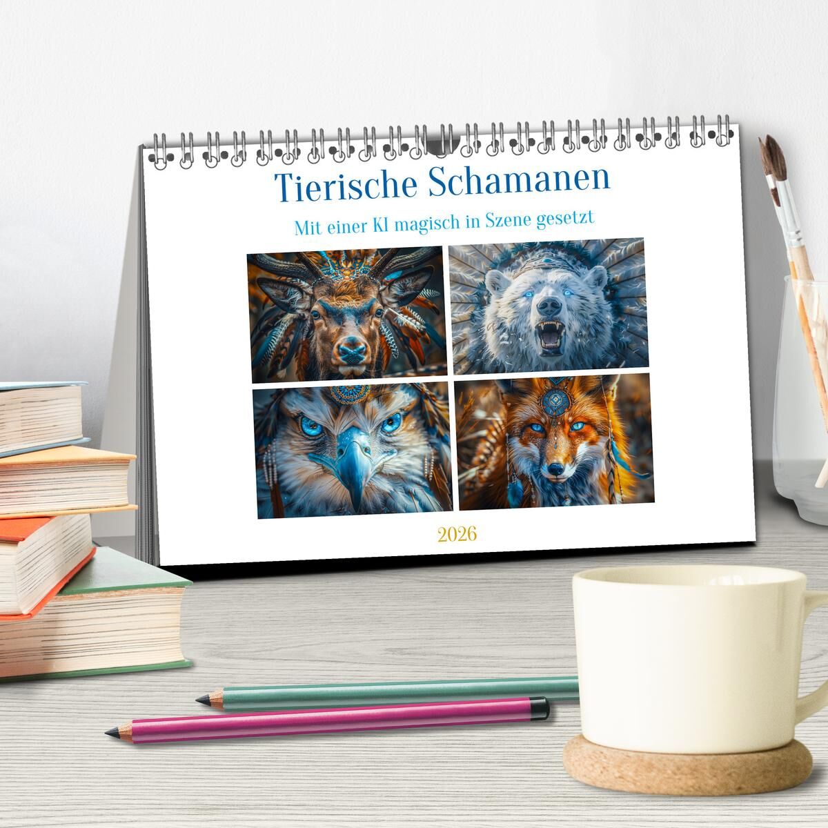 Tierische Schamanen (Tischkalender 2026 DIN A5 quer), CALVENDO Monatskalender