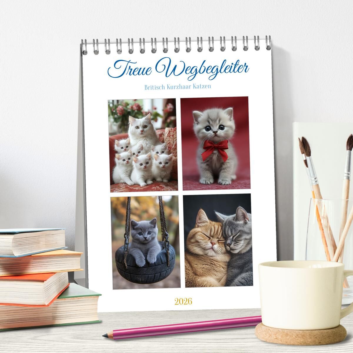 Tauche ein in die Welt der eleganten Britisch Kurzhaar Katzen! Unser exklusiver Kalender "Treue Wegbegleiter" begleitet dich Monat für Monat mit wunderschönen Aufnahmen dieser sanften und majestätischen Katzen. Ihre treue und gelassene Natur macht sie zu wahre...