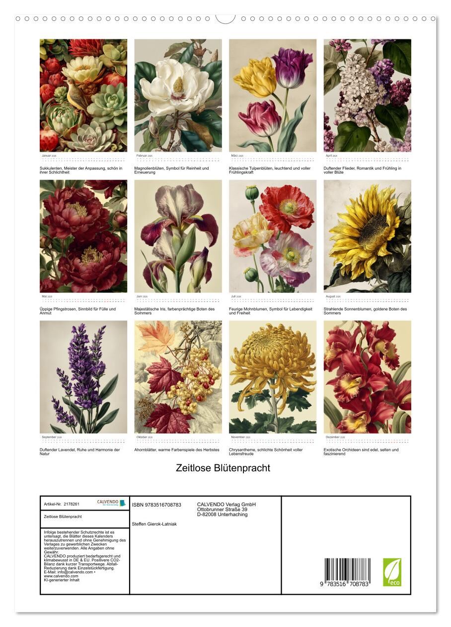 Zeitlose Blütenpracht (hochwertiger Premium Wandkalender 2026 DIN A2 hoch), Kunstdruck in Hochglanz