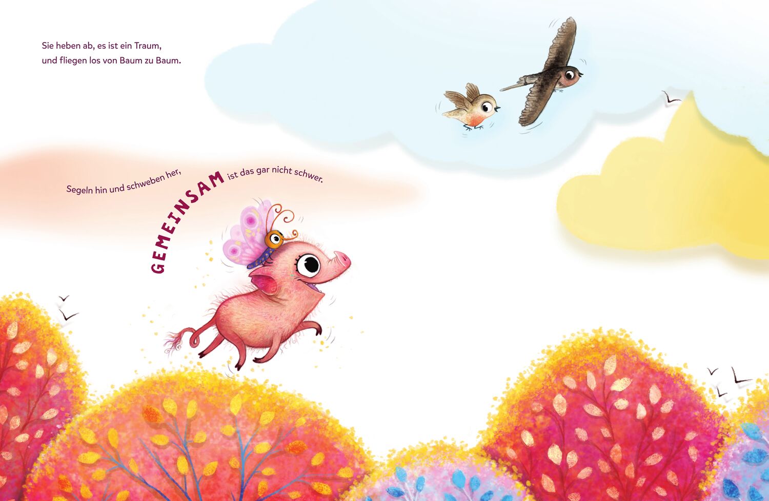 Freundschaft und Mut verleihen Flügel Rosa ist sie, Rosalein, mit Ringelschwanz und etwas klein. Rosalein hat einen Traum. Sie will fliegen, hoch oben am Himmel. Doch wie soll das gehen, so ohne Flügel? Ihre Freunde lachen sie aus. Sie ist nun mal ein Schwein...