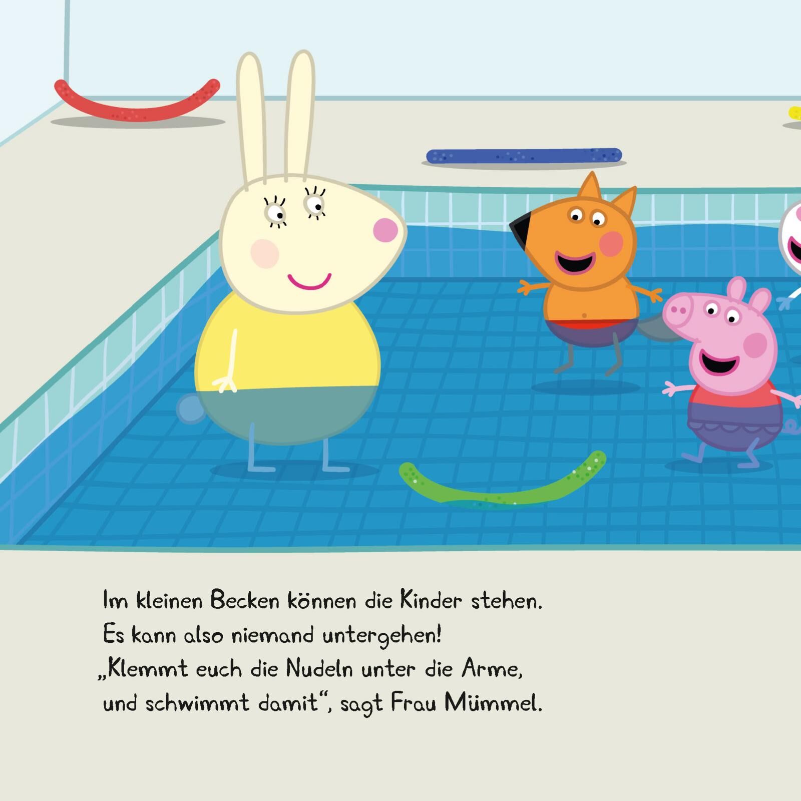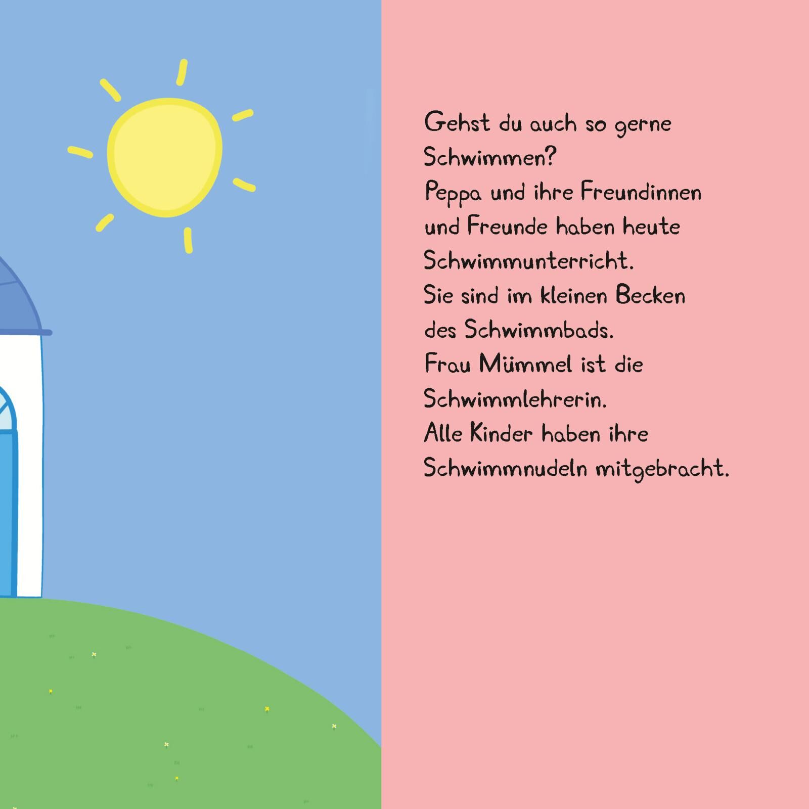 Peppa ist aufgeregt. Heute geht es ins Schwimmbad. Frau Mümmel ist die Schwimmlehrerin und gibt Peppa und ihren Freundinnen und Freunden Unterricht. Ob wohl alles gut klappt? Autorentext Steffi Korda ist nach Stationen bei verschiedenen Kinderbuchverlagen sei...