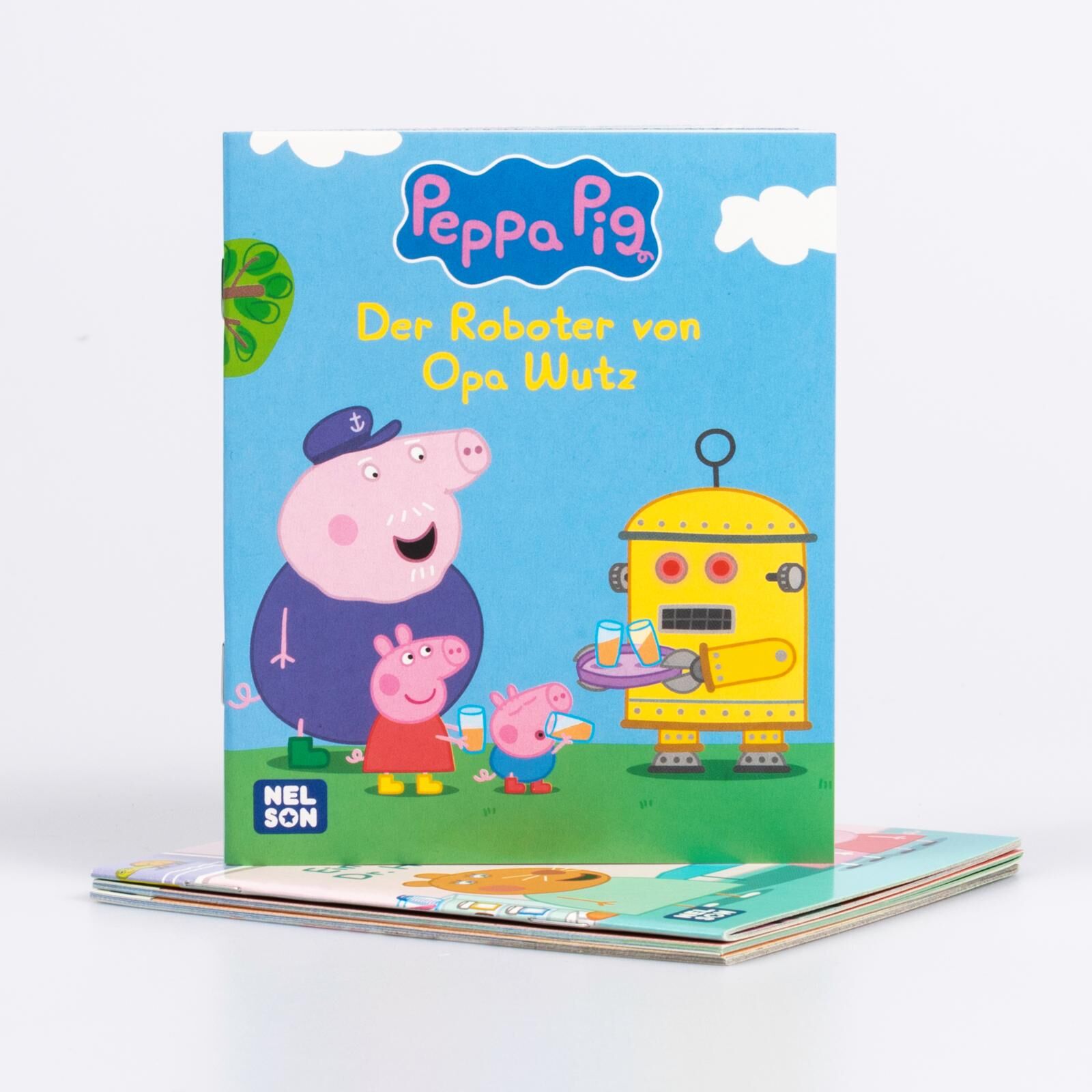 Vier neue Mini-Bücher mit Peppa Wutz die idealen Begleiter für eine Super-Lesezeit, egal ob zu Hause oder unterwegs: Das Matsch-Festival Der Roboter von Opa Wutz Die Feuerwehrübung Ein Tag bei Dr. Hamster Autorentext Steffi Korda ist nach Stationen bei versch...