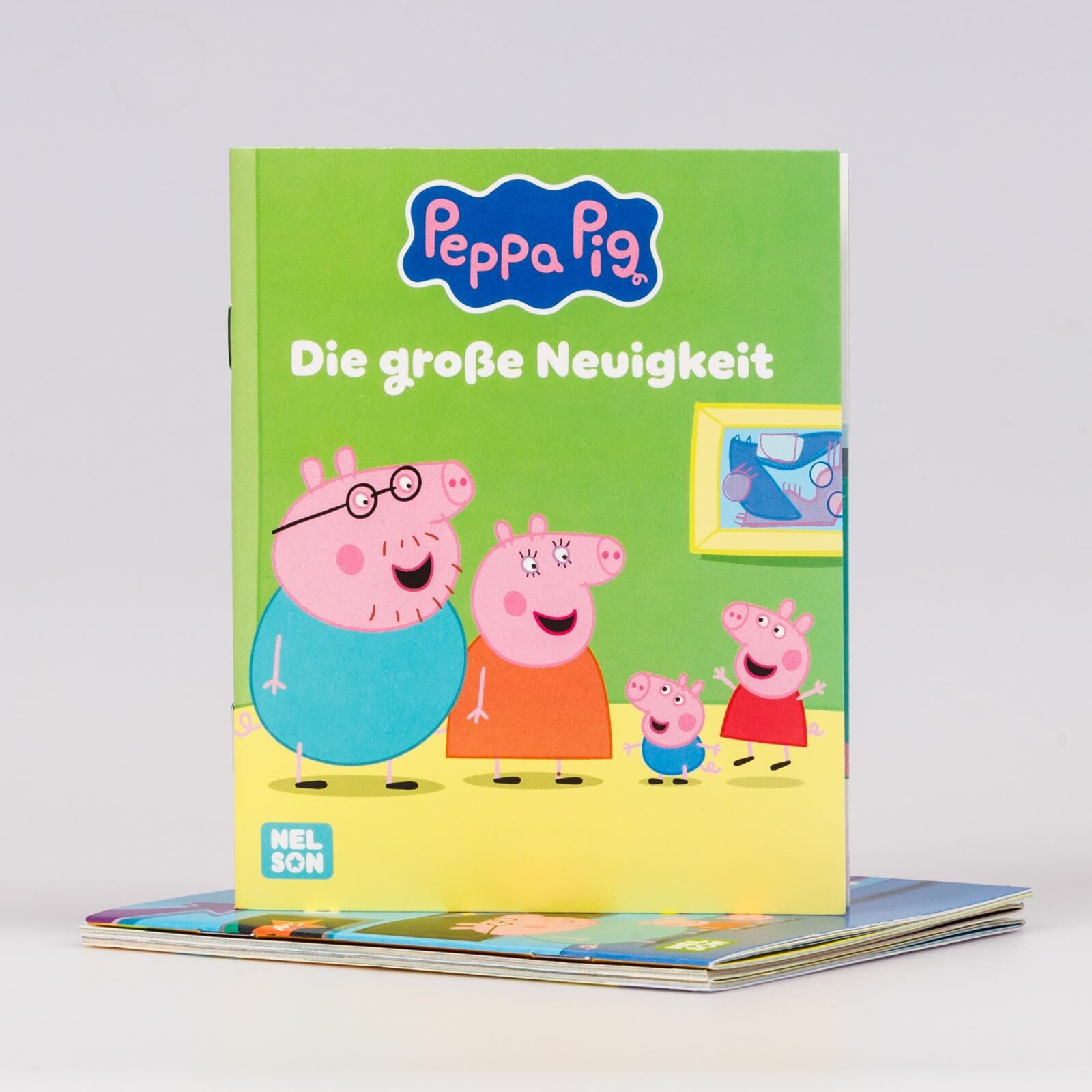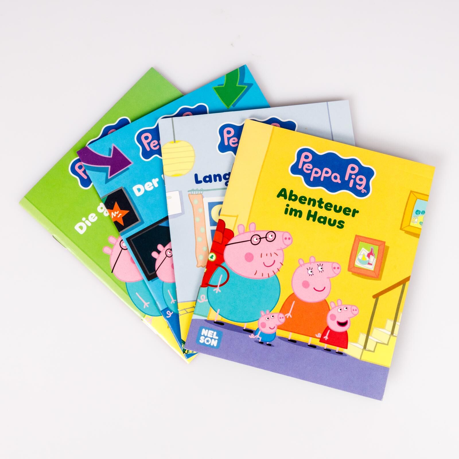 Vierfacher Vorlesespaß mit Peppa Wutz! Dieses Set enthält diese vier Geschichten: Abenteuer im Haus, Der neue Fernseher, Die große Neuigkeit, Lange aufbleiben Minibuch-Set: Vier kurze Geschichten mit beliebten Figuren Praktisches kleines Format: 10x12 cm - pe...