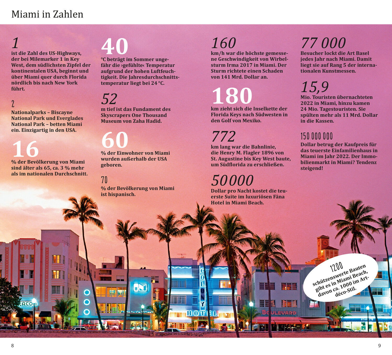 Die Mischung macht's: In Miami trifft karibisches Flair auf coole Streetart, Beachpartys und Nightclubs auf Latin-Rhythmen und Jazzkneipen, amerikanische Mega-Shoppingmalls auf Kunstgalerien, Büro- und Hotelwolkenkratzer auf exzentrische Art-déco-Pracht. Bene...