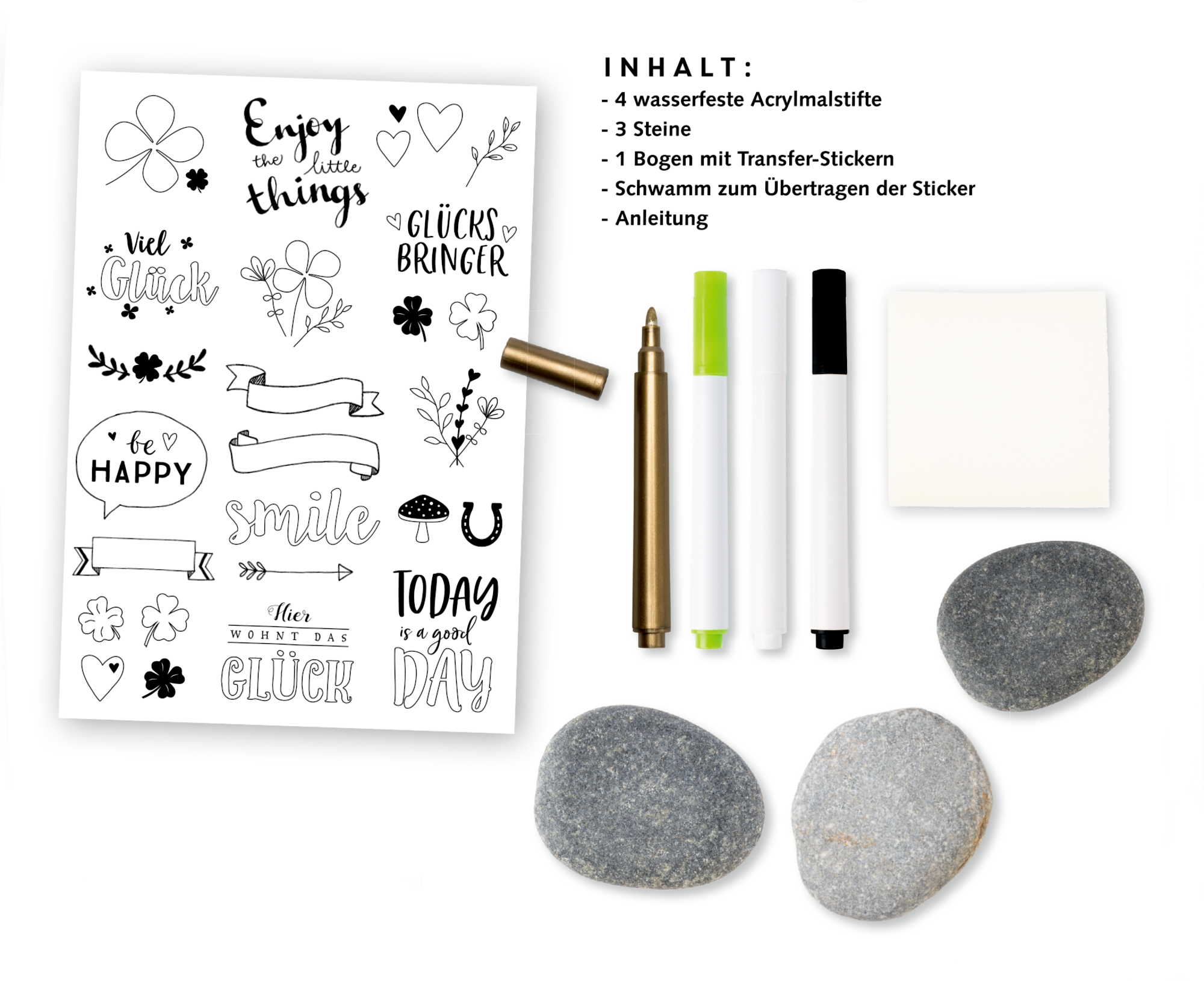 Raus in die Natur, Steine sammeln und gestalten - ein meditativ entschleunigender Trend für die ganze Familie! Mit den Transferstickern lassen sich die Motive leicht auf die im Set schon enthaltenen 3 Steine auftragen und mit den enthaltenen Acrylmalstiften g...