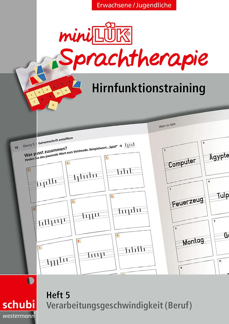 Funktionen und Affektkontrolle haben sprachunterstützende Funktion. Die Arbeitshefte der Reihe miniLÜK® Sprachtherapie Hirnfunktionstraining' können in der logopädischen Therapie mit Erwachsenen und Jugendlichen mit Aphasie, Dysarthrie, oder kognitiver Dyspha...