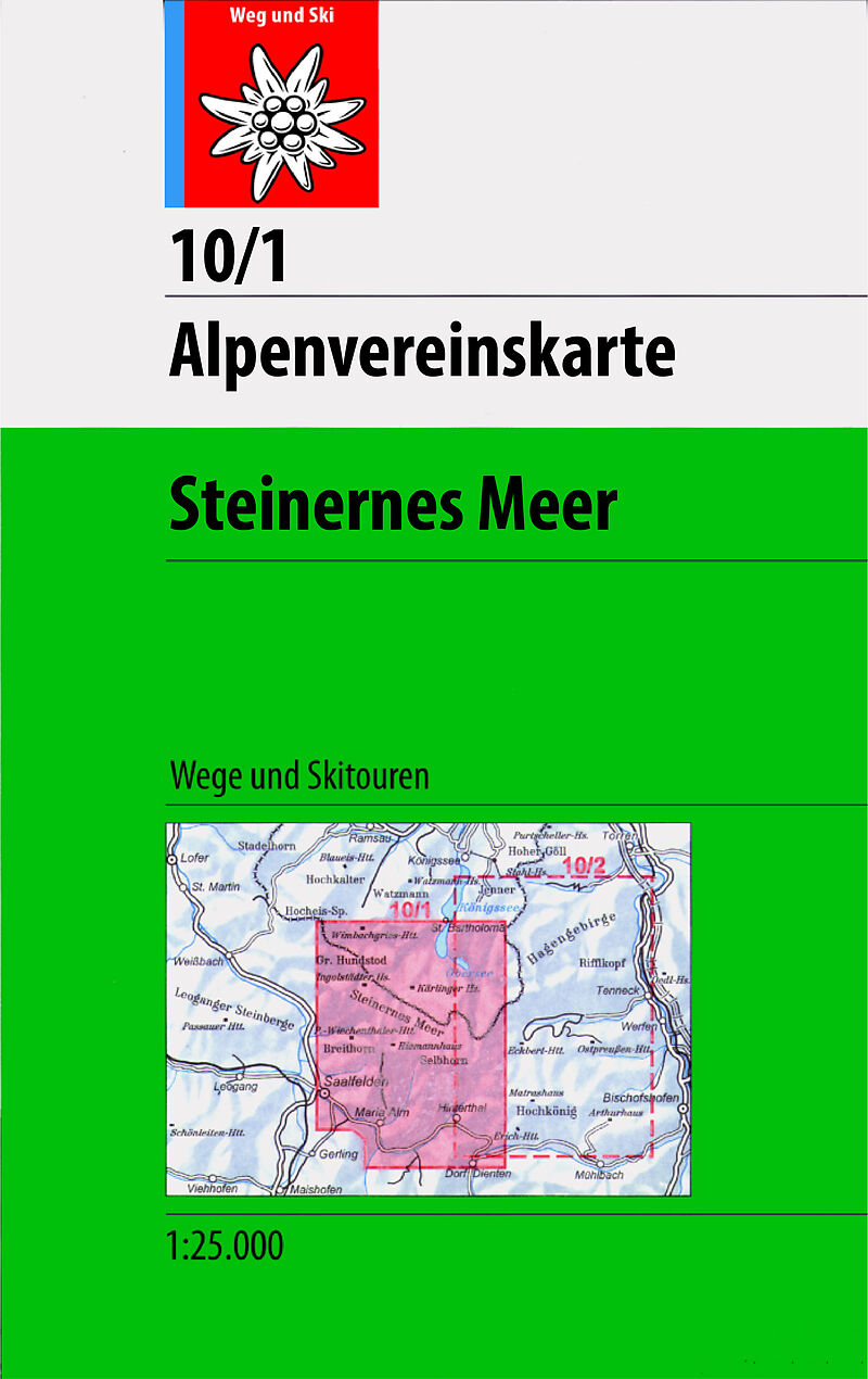 Topographische Karte 1:25.000, mehrfarbig, mit Wegmarkierungen, Skirouten, Bushaltestellen, Schummerung, Felszeichnung, Gletscherdarstellung, Kennzeichnung der Klettersteige, UTM-Gitter. Gebiet: Maria Alm, Saalfelden, Hinterthal, Ingolstädter Haus, Riemannhaus...