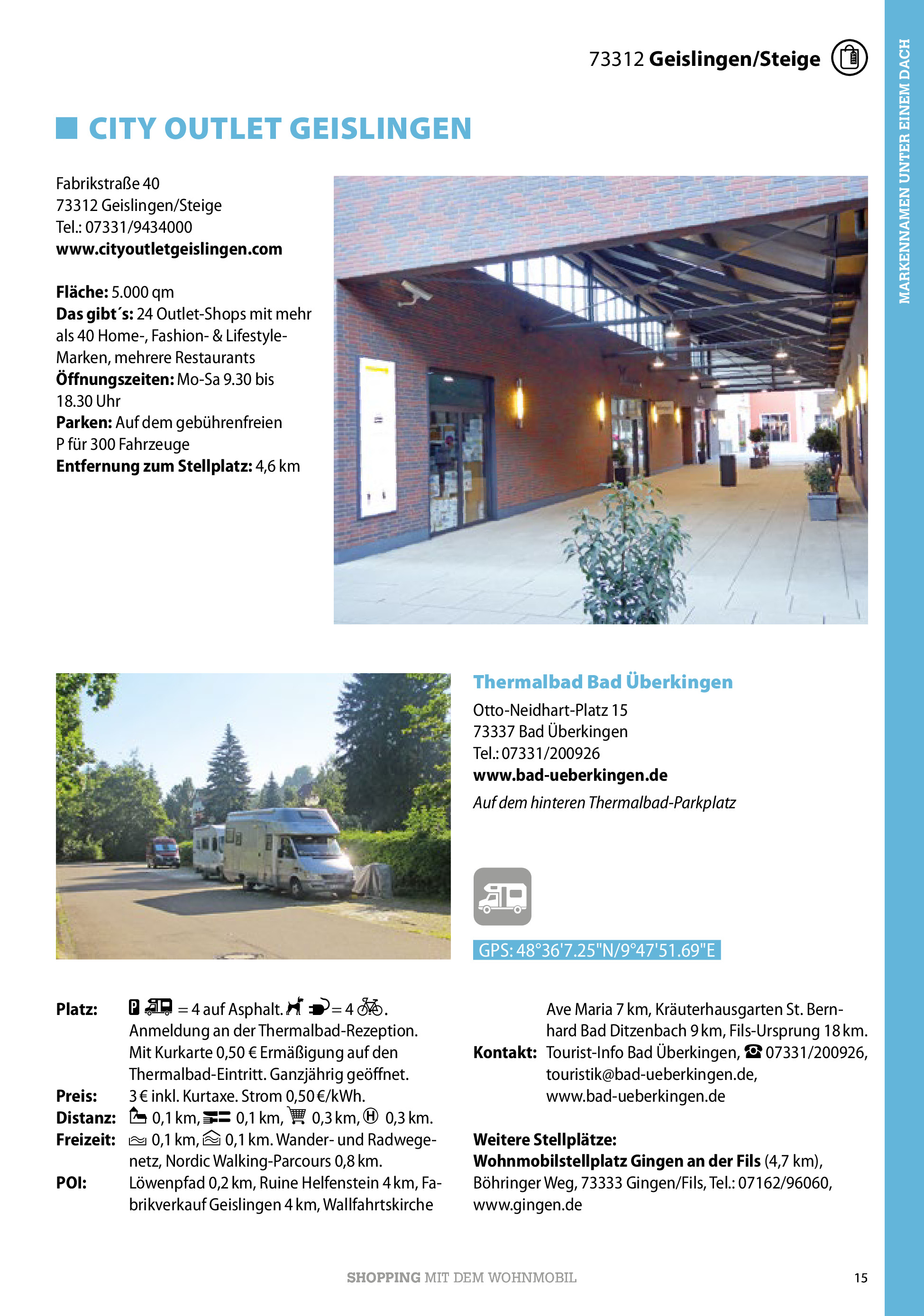 Stellplatzführer Outlest Schnäppchen-Shopping mit dem Wohnmobil Sie shoppen gern oder wollen einen Teil Ihres Urlaubs dazu nutzen, um in Ruhe Schnäppchen jagen zu können? Dieser Stellplatzführer verbindet Informationen zu Marken und Angebot von Outlets und Fab...