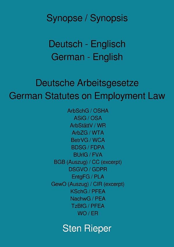 Synopse/Synopsis Deutsche Arbeitsgesetze (German Statutes on Employment Law) Deutsch-Englisch 3. erweiterte Auflage Februar 2025. Inhalt/Content Neu/New: ArbSchG, ASiG, ArbStättV, BUrlG, NachwG Synoptische Darstellung deutscher Arbeitsgesetze (German Statutes ...