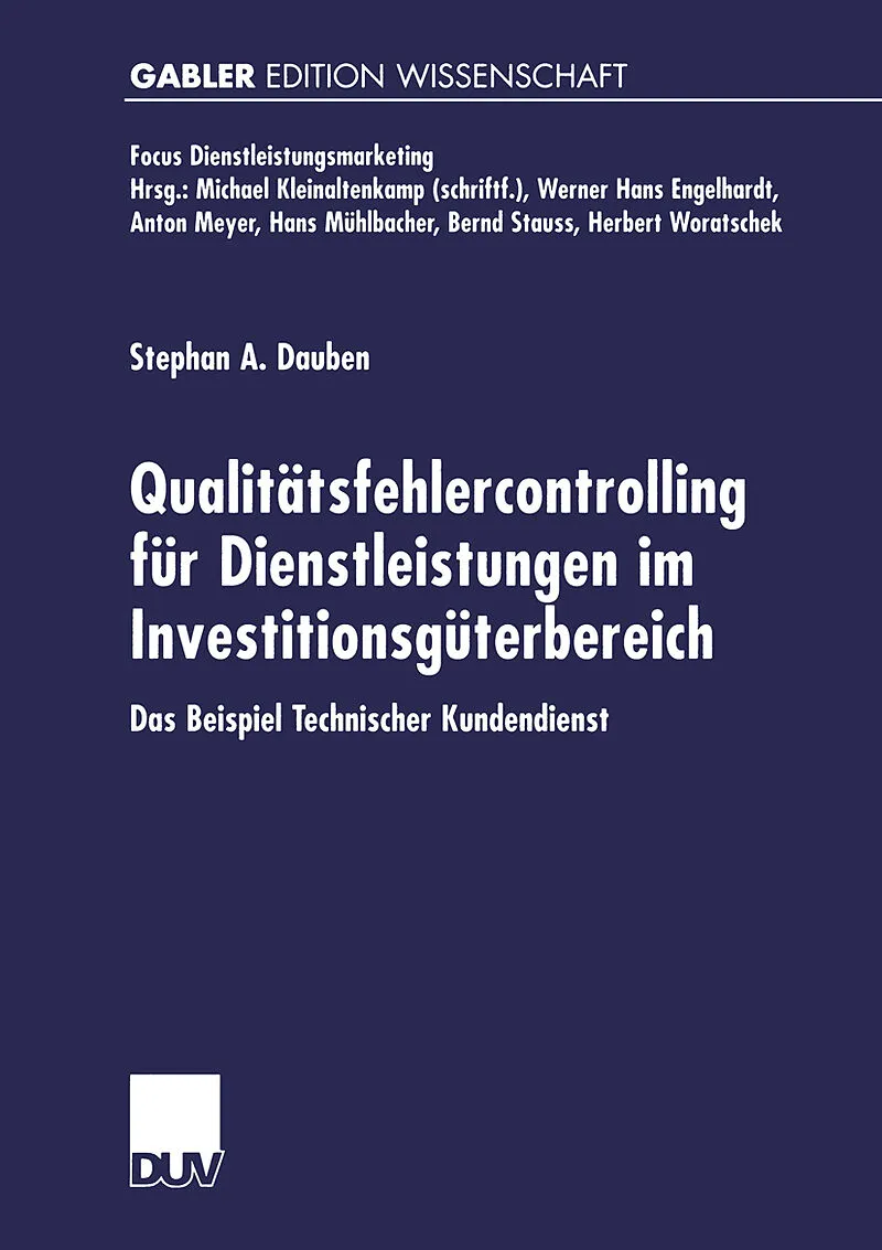 Dienstleistungen im Investitionsgüterbereich sind im Gegensatz zu rein konsumtiven Dienstleistungen selten Gegenstand von Forschungsarbeiten. Die bisher erschienenen Publikationen beziehen sich vor allem auf die Programmpolitik sowie die Ermittlung der strateg...