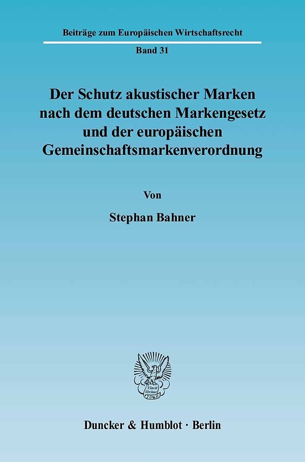 Gegenstand der Untersuchung ist der Schutz akustischer Marken nach dem deutschen Markengesetz und der europäischen Gemeinschaftsmarkenverordnung. Im Anschluss an die Darstellung akustischer Zeichen in der Praxis - insbesondere unter Berücksichtigung ihrer beso...