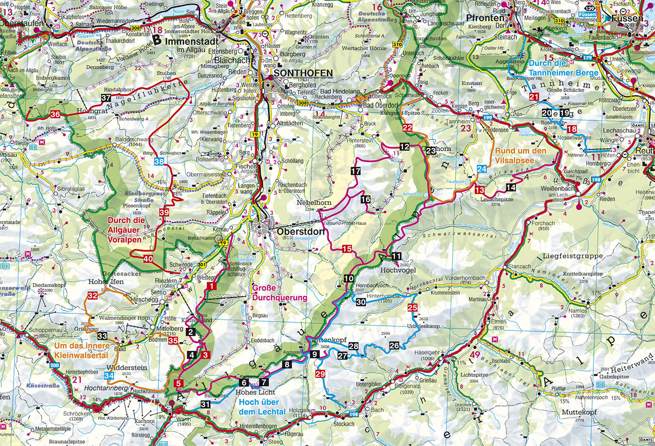 Hüttenwandern auf aussichtsreichen Höhenwegen und Klettersteigen in den Allgäuer Alpen finden sich dafür herrliche Möglichkeiten. Berühmt sind Heilbronner Weg, Hindelanger oder Mindelheimer Klettersteig und Gipfel wie Hochvogel, Mädelegabel oder Trettachspitze...