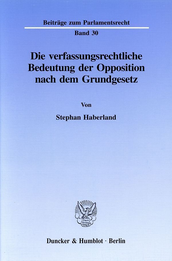 Die verfassungsrechtliche Bedeutung der Opposition nach dem Grundgesetz.