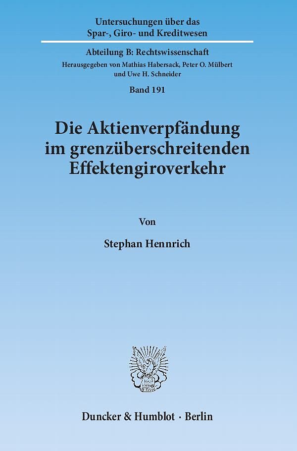 Die Girosammelverwahrung von Aktien hat eine weitgehende Immobilisierung und Entmaterialisierung des Wertpapierhandels bewirkt. Am Beispiel der Aktienverpfändung befasst sich die Arbeit mit der Vereinbarkeit des so ausgestalteten Effektengiroverkehrs mit der s...