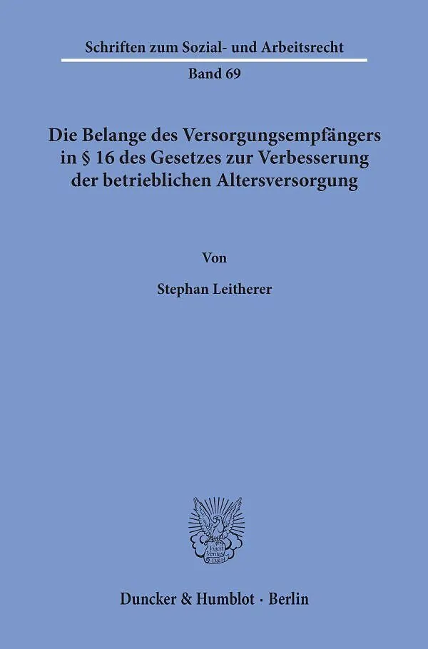 Die Belange des Versorgungsempfängers in § 16 des Gesetzes zur Verbesserung der betrieblichen Altersversorgung.
