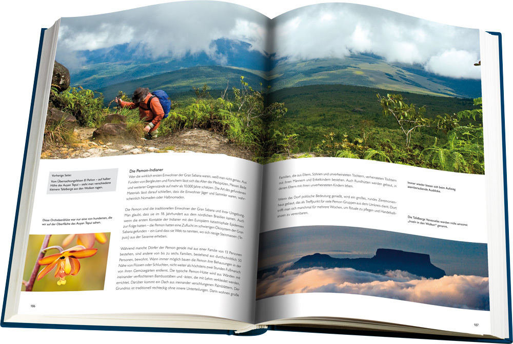 Ob dampfender tropischer Regenwald, trockene Wüsten, eiskalte Gletscher, gigantische Wasserfälle oder eine Tierwelt, wie sie abwechslungsreicher nicht sein kann in Mittel- und Südamerika reiht sich ein Natur-Highlight an das nächste. Die 14 Fotografen dieses einzigartigen Fotobildbands waren in Costa Rica, Venezuela, Brasilien, Argentinien, Peru, Chile, Equador und Bolivien, auf Galapagos und den Falklandinseln unterwegs. Sie haben absolut beeindruckende Aufnahmen mitgebracht. Die Auswahl der Bilder reicht von farbenprächtigen Vögeln des Pantanal und knallbunten Fröschen aus Costa Rica, über die kargen Landschaften der Atacama-Wüste, Vulkangipfel der Anden und die Vielfalt Patagoniens, bis hin zu der einzigartigen Tierwelt des Galapagos-Archipels und der Falklandinseln. In einer abenteuerlichen Trekking-Tour wurde eine Insel in den Wolken, der Auyan Tepui in Venezuela, bestiegen. Jedes der acht Kapitel enthält informative Texte und Karten. So vermittelt dieser Fotobildband auch ein solides Grundwissen über diese Natur-Highlights Südamerikas.