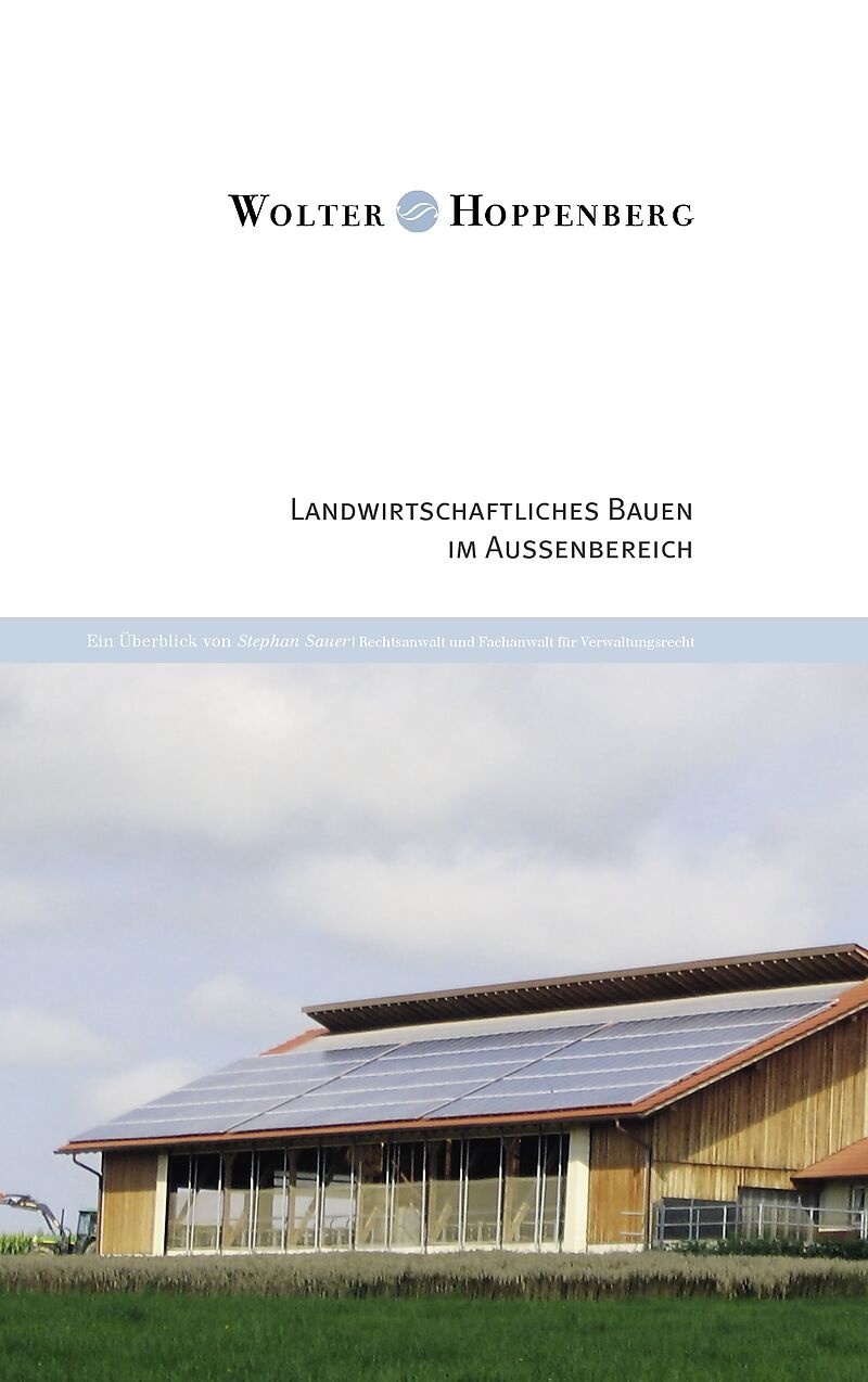 Für landwirtschaftliche Bauvorhaben ist der so genannte Außenbereich nach § 35 Baugesetzbuch (BauGB) von heraus-ragender Bedeutung. Daher soll diese Broschüre Landwirten einen ersten Überblick geben, wenn Neubauten, Umbauten oder Nutzungsänderungen angedacht s...