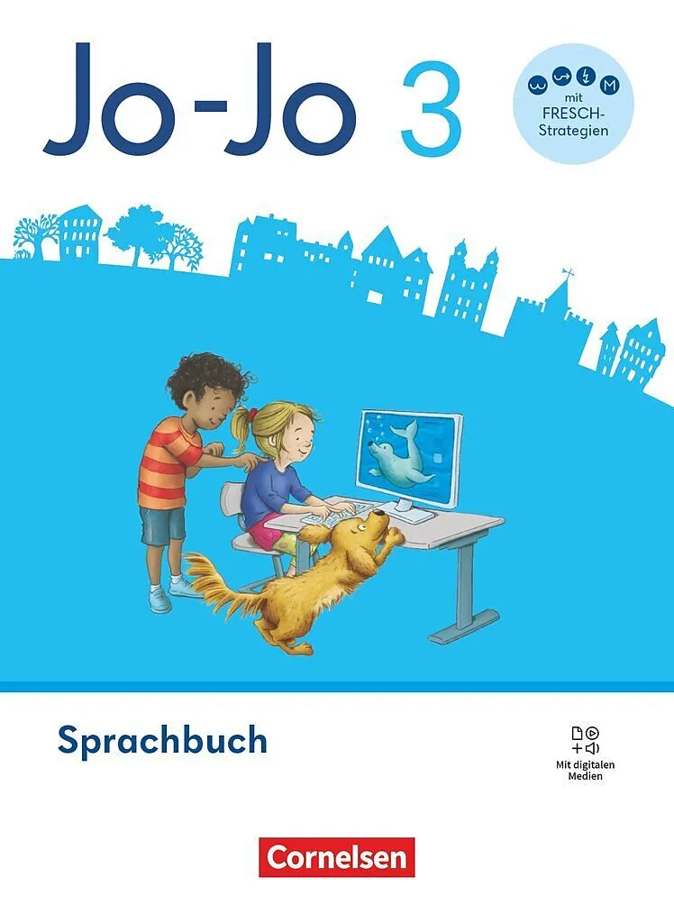 Das Jo-Jo Sprachbuch motiviert die Kinder mit seinen alltagsnahen Themenkapiteln und sichert den Lernerfolg in leistungsgemischten Lerngruppen mit klaren Strukturen, Strategien und konsequenter Dreifachfachdifferenzierung. Als liebevoller Lernbegleiter unterstützt Hund Jojo die Kinder. Das Jo-Jo Sprachbuch ist ein echtes Rund-um-Wohlfühlpaket: Es setzt alle Anforderungen praxisnah um, entlastet Sie beim Unterrichten und unterstützt die Kinder wirksam im Schulalltag.   Das zeichnet das Jo-Jo Sprachbuch aus: Optimiert für den heutigen Schulalltag: Kennzeichnend für das Jo-Jo Sprachbuch ist die zweiteilige Struktur mit lebensnahen Themenkapiteln im vorderen Buchteil und drei fachsystematischen Kursen (Richtig schreiben, Sprache untersuchen, Texte verfassen) sowie Arbeitstechniken zum Nachschlagen im hinteren Buchteil. Die bewährten Themenkapitel bieten jetzt viele neue Texte und Illustrationen. Durch klare Verweise in den Fußzeilen sind beide Buchteile optimal miteinander verknüpft. Das neue Kapitel Ich mache mit beschäftigt sich in Klasse 3 mit Demokratieerziehung und dem Mitbestimmungsrecht von Kindern.Sprachkompetenz erfolgreich vermitteln: Intensives Training von Grammatik und Rechtschreibung. Durch die konsequente Dreifachdifferenzierung (13 Würfelpunkte) kommen alle Kinder sicher zum Ziel. Mit FRESCH-Rechtsschreibstrategien. Die Grundwortschatzwörter werden konsequent geübt (Hier üben wir, Wörterliste).Optimale Klassenarbeitsvorbereitung: Schreibprojekte als kleinschrittiges, methodenstarkes Aufsatztraining. In Klasse 3: Eine Erlebniserzählung schreiben und Einen Sachtext schreiben (je 4 Buchseiten) sowie ein kleines Schreibprojekt Brief (2 Buchseiten).Zwei Beilagen unterstützen die Lernentwicklung: Im Lernspurenheft (24 Seiten) reflektiert und dokumentiert jedes Kind kontinuierlich seine Lernentwicklung (optimal auch für Elterngespräche). Mit der FRESCH-/Grammatikkarte hat jedes Kind Wichtiges immer im Blick.Medienkompetenz vermitteln und Lernen mit digitalen Medien: Audiovisuelle Materialien veranschaulichen die Lerninhalte und unterstützen die Kinder beim Üben und Vertiefen. Das Materialpaket mit den digitalen Medien nutzen Kinder kostenlos in der Cornelsen Lernen App oder im E-Book mit Medien (z. B. PrintPlus-Lizenz). Lehrkräfte finden alle Medien sehr komfortabel im Unterrichtsmanager Plus.