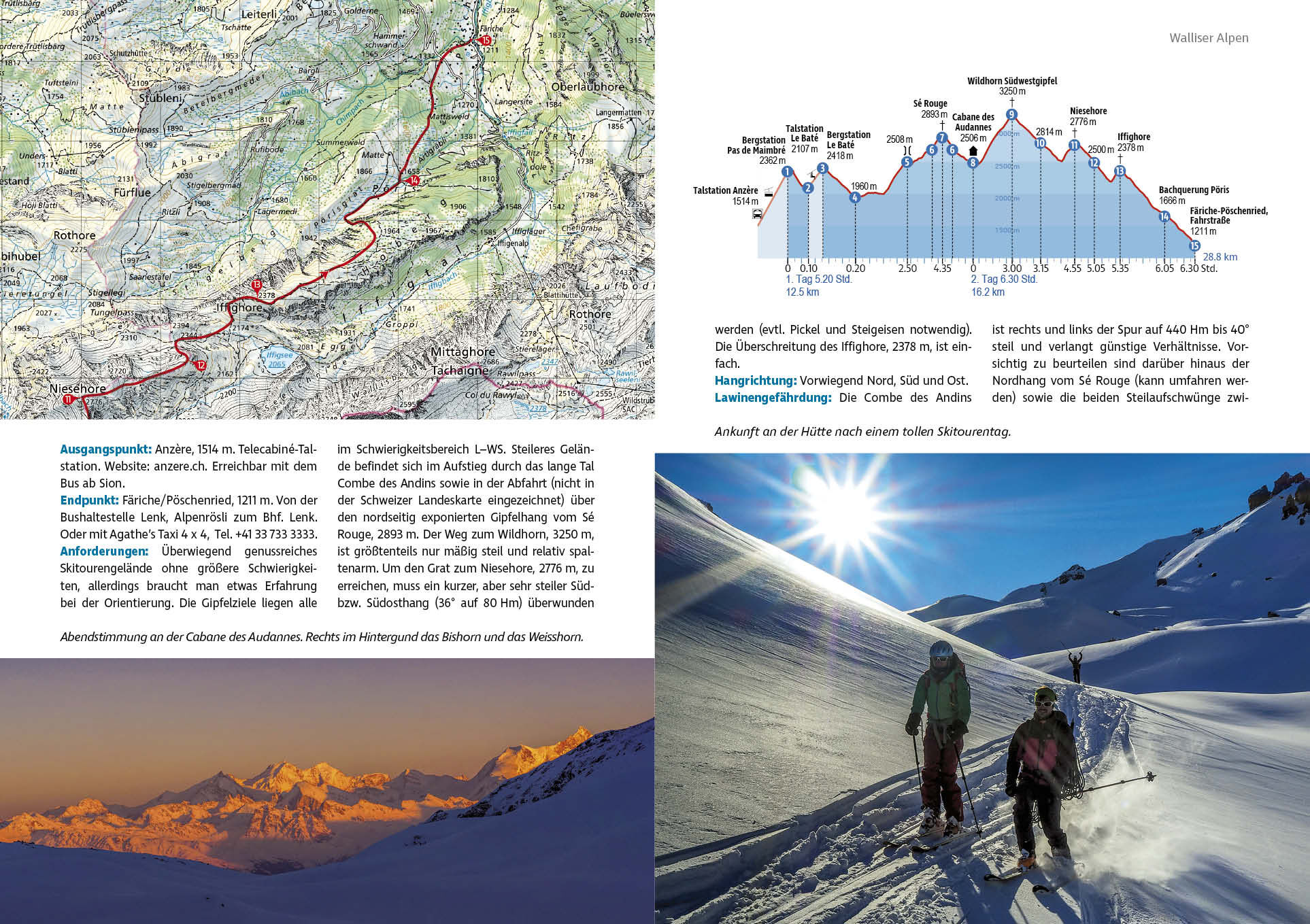Infos zu Tourenplanung, Nachhaltigkeit, erste Hilfe unterwegs und Lawinenkunde sind in einem zusätzlichen Kapitel ausführlich präsentiert. Exklusive Fotos sorgen beim Betrachten für ungeduldiges Scharren mit den Skitourenstiefeln. Das Ergebnis ist ein aufwendig gestaltetes Buch, mit dem man gut planen kann und Skitourenträume Wirklichkeit werden. Kurz: »Skitouren-Erlebnis Schweiz« ist ein Buch für jeden, der in der Schweiz abwechslungsreiche Mehrtagesskitouren unternehmen möchte.
