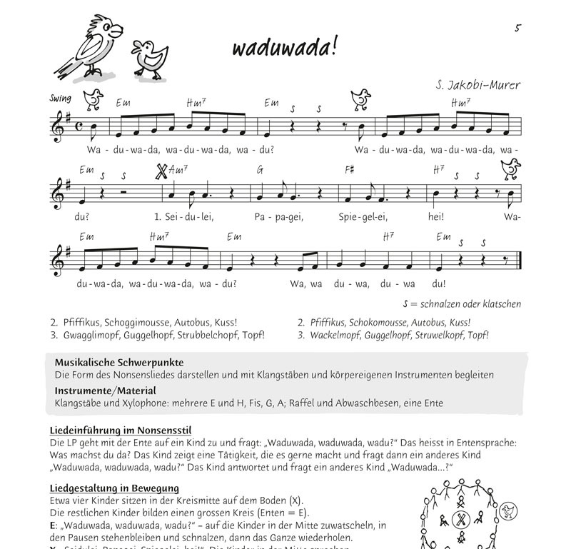 Lieder zu verschiedenen thematischen Schwerpunkten: Gemeinschaft, vier Elemente, Disco, Erde und Mond sowie Tiere, Natur/Umwelt, Berufe, Märchen und Wünsche, im Jahreslauf - mit musikdidaktischen Anregungen zur Liedeinführung, zum Singen, Sprechen und zur Gehö...