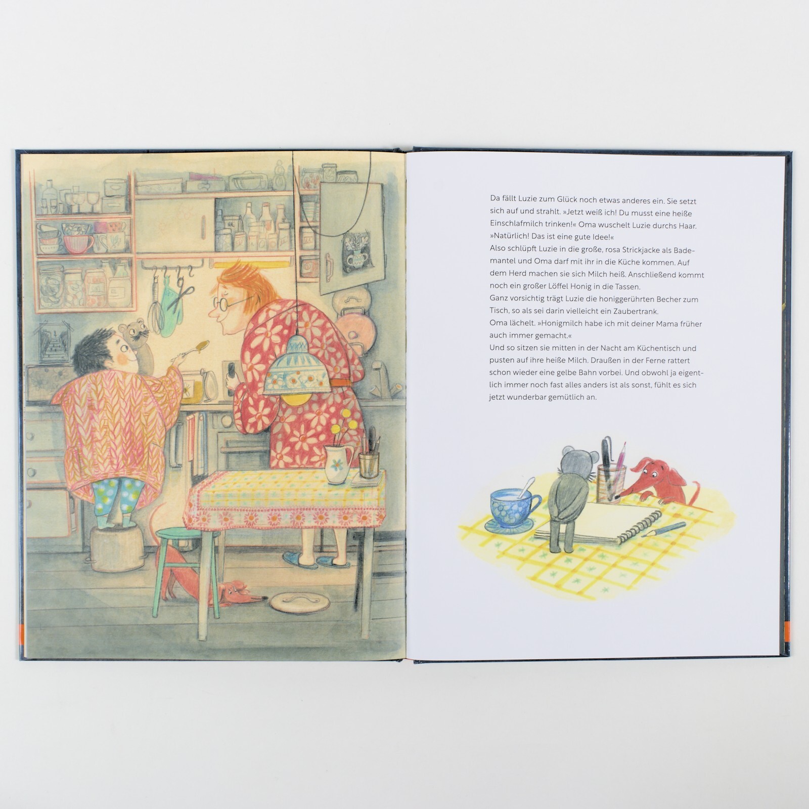 Heute ist ein toller Tag, denn heute übernachtet Luzie bei Oma. Zum allerersten Mal ganz alleine, ohne Mama und Papa. Luzie und Oma zelebrieren ihren sturmfreien Abend mit Schnittchen vorm Fernseher und Kindersekt aus geringelten Gläsern. Als Einschlafoma im N...