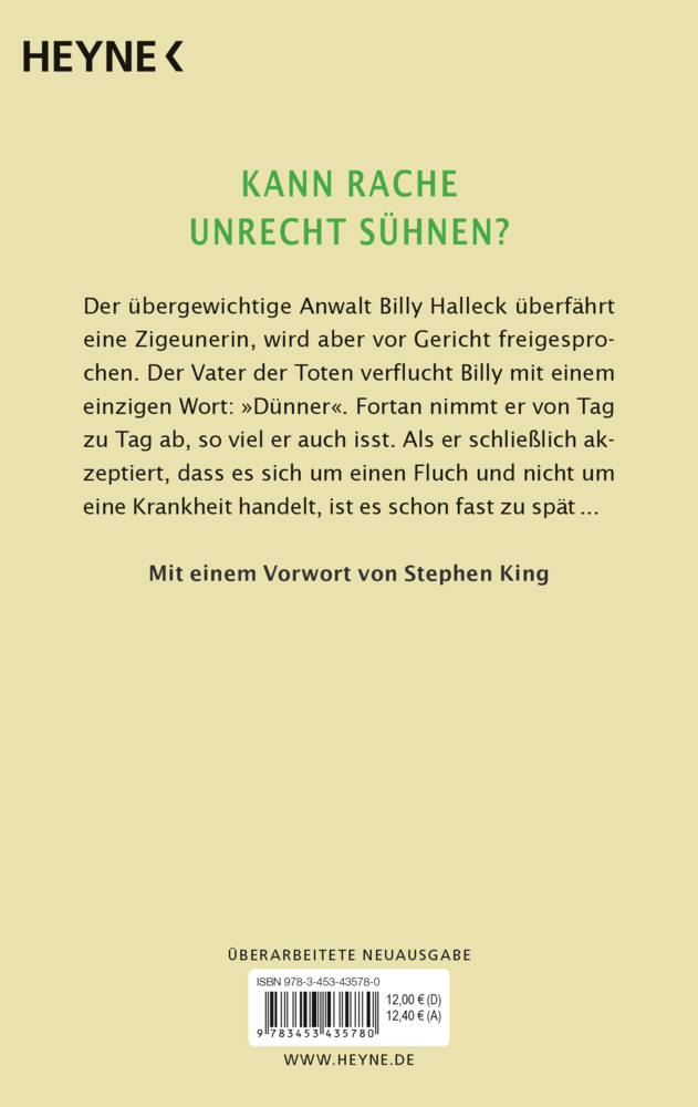 Billy Halleck aus Connecticut hat nur ein einziges Problem: er wiegt 50 Pfund zuviel. Als er einer alten Zigeunerin begegnet, nimmt sein bisher so angenehmes Leben eine verhängnisvolle Wendung. Billy verliert plötzlich an Gewicht. Zuerst ist er erfreut darüber...