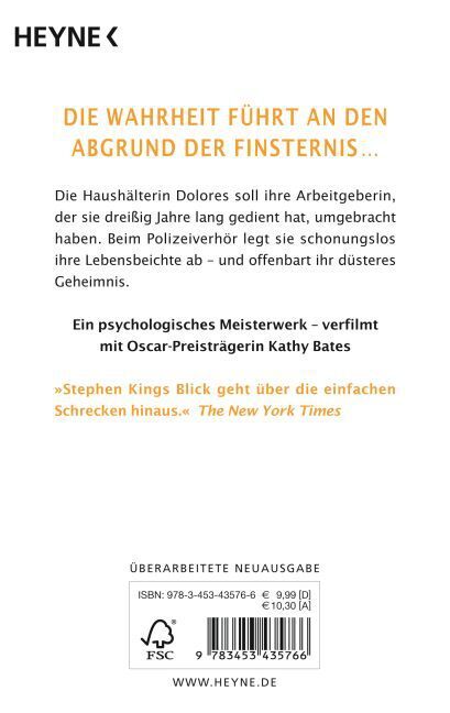Im Mittelpunkt dieses Romans steht ein Frauenschicksal. Schauplatz ist die kleine Insel Little Tall Island vor der Küste Nordneuenglands. Hier lebt die 65jährige Dolores Clairborne. Seit undenklichen Zeiten arbeitet sie schon für die reiche, rücksichtslose Ver...