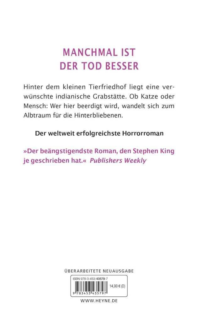 Hinter dem idyllisch wirkenden weißen Haus am Rande der Kleinstadt Ludlow liegt ein uralter indianischer Begräbnisplatz voll umgestürzter Grabmale: ein Ort, an dem es umgeht, ein Ort absurder, gottloser Versuchungen. Als die Katze der Familie Creed überfahren ...