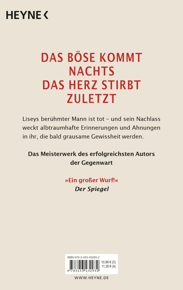Das Böse kommt nachts. Das Herz stirbt zuletzt. Liseys berühmter Mann ist tot und sein Nachlass weckt albtraumhafte Erinnerungen und Ahnungen in ihr, die bald grausame Gewissheit werden ... In Stephen Kings vielleicht dichtestem und persönlichstem Roman geht e...