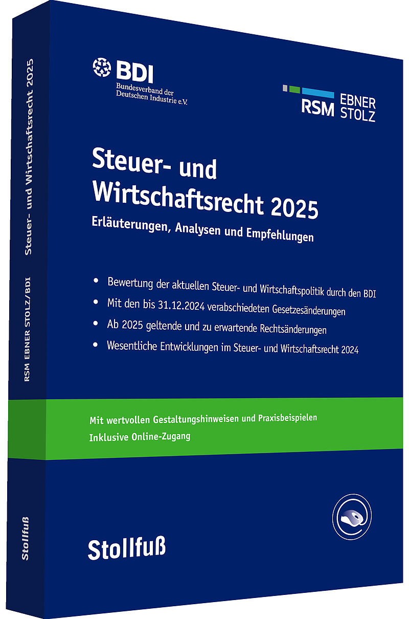 In diesem Ratgeber bewertet der Bundesverband der Deutschen Industrie e.V. (BDI) die aktuellen steuer- und wirtschaftsrechtlichen Entwicklungen und zeigt Handlungsbedarf aus Sicht der Wirtschaft auf. Autoren von RSM Ebner Stolz skizzieren die ab 2025 anstehenden Änderungen im Steuer- und Wirtschaftsrecht in praxisnaher Darstellung. Darüber hinaus vermittelt eine thematisch sortierte Auswertung der aktuellen Rechtsprechung, wesentlicher Verlautbarungen der Finanzverwaltung und Vorgaben der berufsständischen Organisationen der Wirtschaftsprüfer ein Gesamtbild über die wichtigsten Entwicklungen des Jahres 2024. Auf daraus resultierenden Handlungsbedarf, etwa in Bezug auf die Steuererklärungen 2024 und den Jahresabschluss 2024, wird praxisnah hingewiesen.