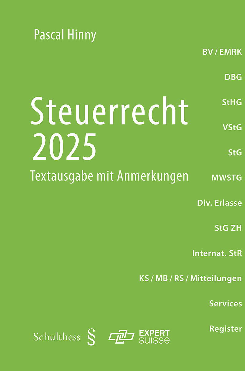 Steuerrecht 2025 ist die bewährte, kompakte und für die Steuerrechtspraxis unverzichtbare Sammlung aller im Schweizer Steuerrecht relevanten Gesetze, Abkommen, Auszüge aus weiteren Bundeserlassen sowie den 100 wichtigsten Kreisschreiben, Rundschreiben und Merk...