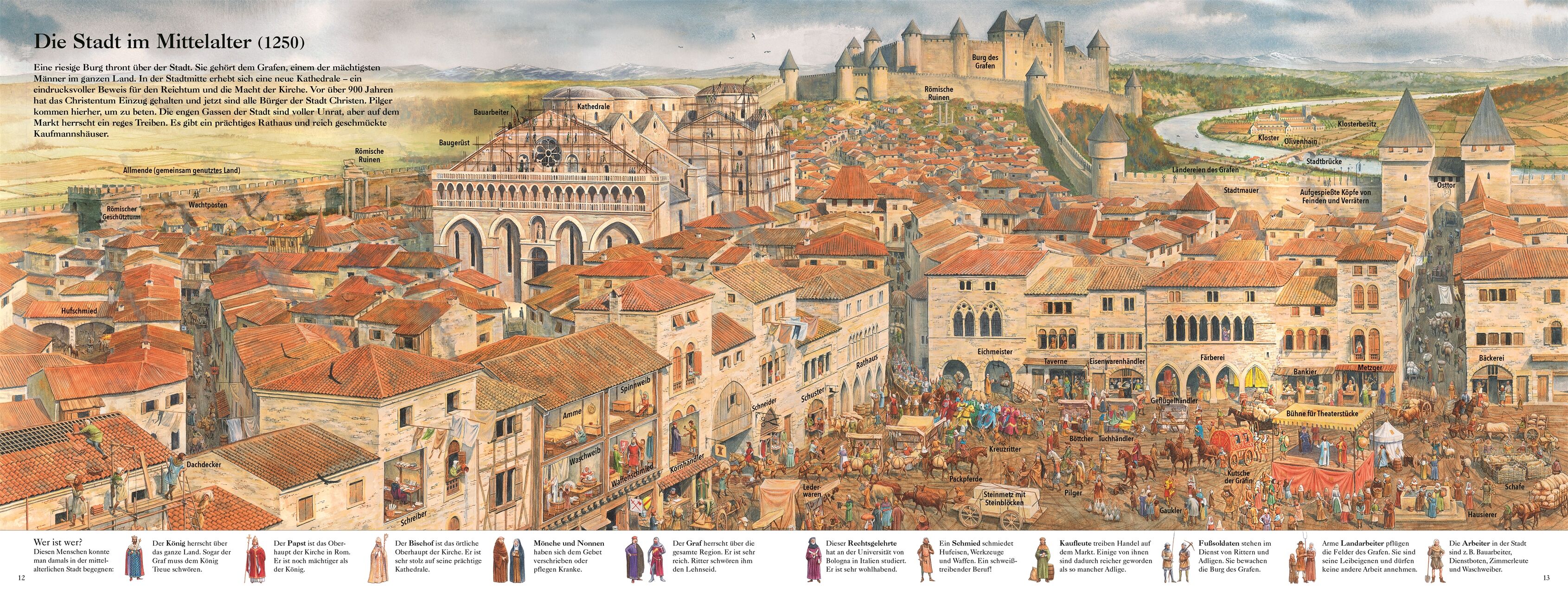 Die Entwicklung einer Stadt in faszinierenden Wimmelbildern: Von der kleinen Siedlung im antiken Griechenland bis zur modernen Wolkenkratzer-Metropole dieses beeindruckende Bilderbuch entführt mit 12 detailreichen Wimmelbildern auf eine einzigartige Reise dur...