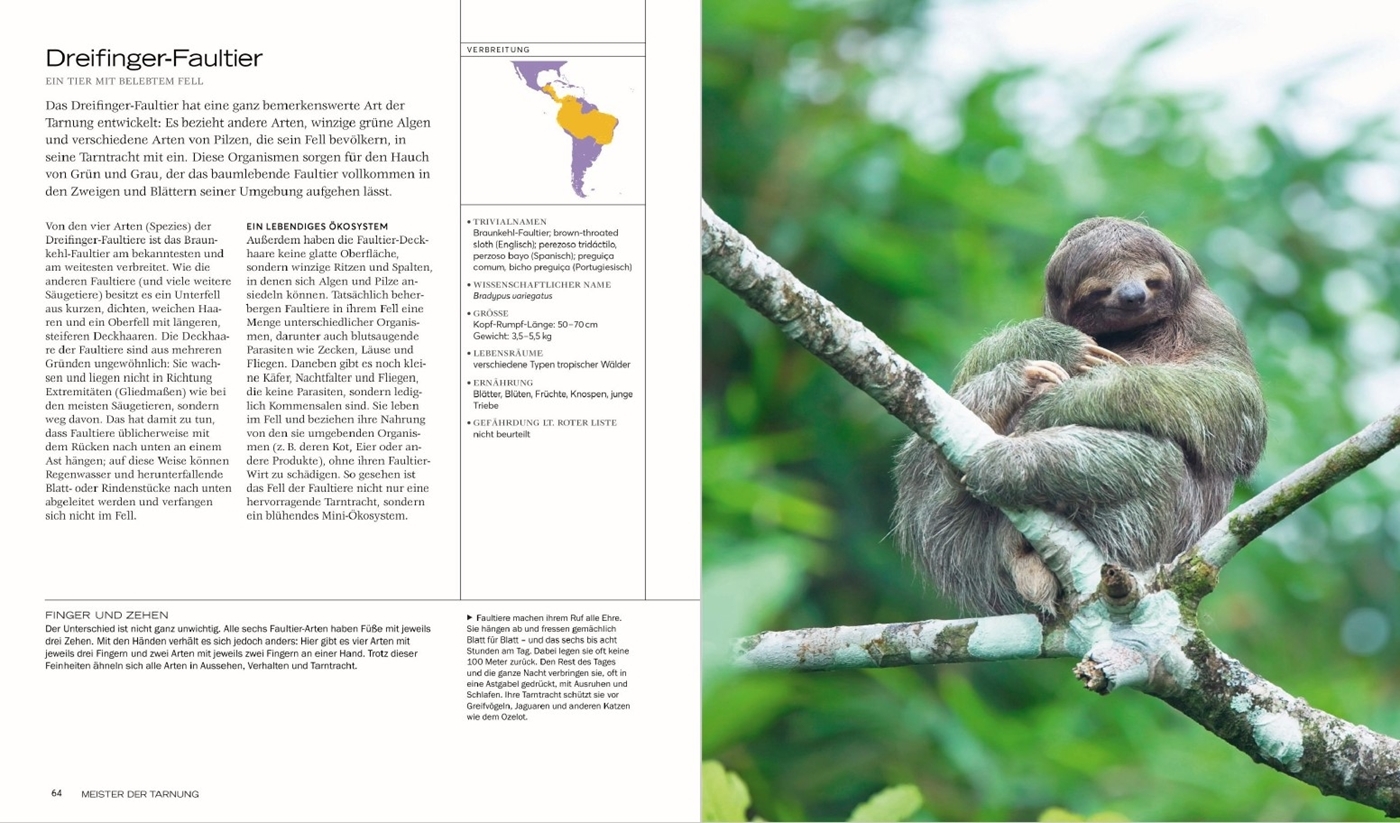 Ob Alpenschneehuhn oder Zwergseidenäffchen, Große Anakonda oder Satanischer Blattschwanzgecko: 130 beeindruckende Aufnahmen von Verwandlungsexperten und anpassungsfähigen Tieren rund um den Globus. Wie und warum diese Tarnmechanismen und Täuschungsmanöver funktionieren, erklärt der Zoologe Steve Parker.