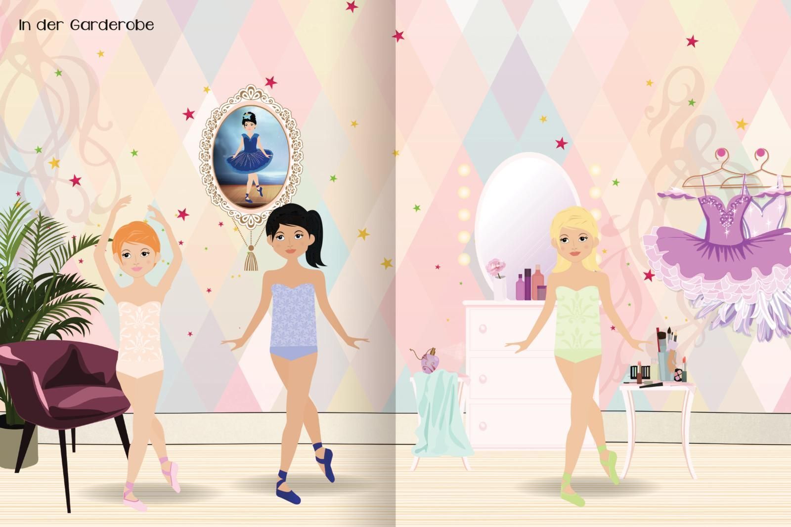 Stickerspaß für Ballerinas Ballett macht so viel Spaß! Entwirf traumhafte Styles und verwandle die Anziehpuppen in zauberhafte Ballerinas. Ob im Ballettstudio oder auf der großen Bühne bei Schwanensee: Mit vielen Kleiderstickern und Accessoires kannst du die ...