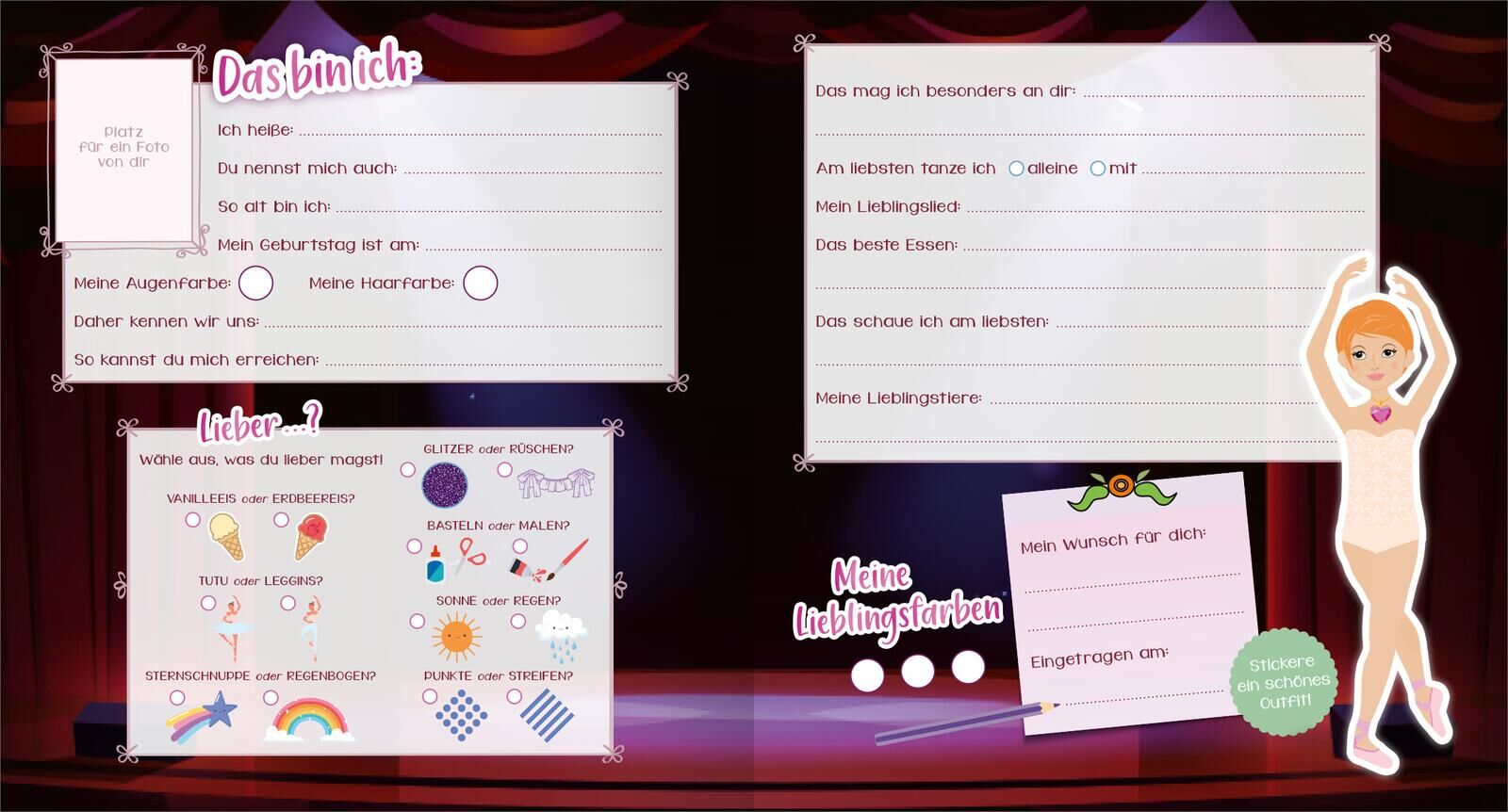 Freundebuch mit Stickerspaß Dieses Freundebuch kombiniert beliebten Stickerspaß mit Anziehpuppen und viel Platz zum Eintragen für alle deine Freundinnen und Freunde. Auf jeder Doppelseite gibt es neben den unterschiedlichsten Fragen zu eurer Freundschaft eine...
