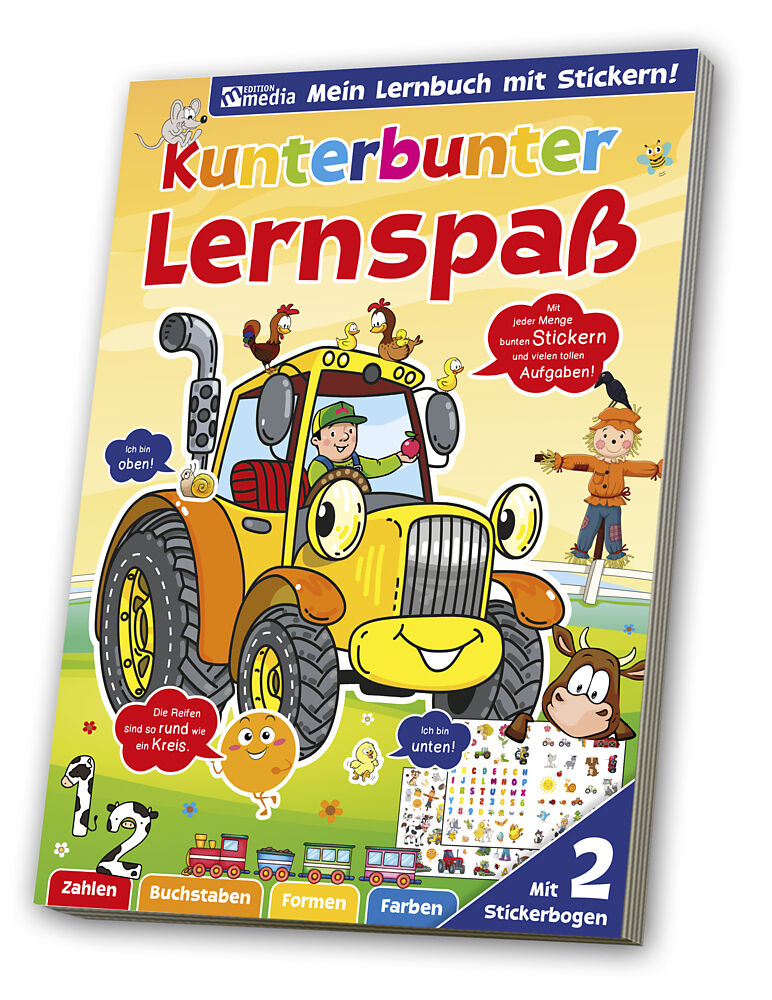Kunterbunter Lernspaß: Traktor / LandwirtschaftDie kindgerechten Erklärungen und die pfiffigen Aufgabensorgen mit jeder Menge Stickerspaß für tolle Unterhaltung.Entdecke spielerisch die kunterbunte Welt der Formen undFarben und lerne das Abc und die ersten Zah...