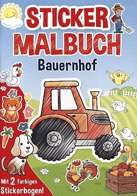 Mal- & Stickerbuch Bauernhof Bist du schon einmal auf einem großen Traktor mitgefahren, hast eine kleine Ziege gefüttert oder einsüßes Kälbchen gestreichelt? Komm mit auf eine abwechslungsreiche Entdeckungstour! Liebevolle Sticker und idyllische Hintergrun...