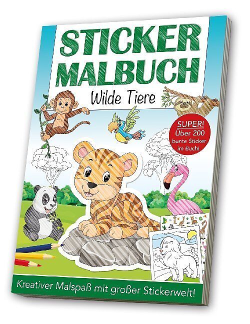 Sticker Malbuch Wilde Tiere; Entdecke die Welt der wilden Tiere! Erwecke die süßen Malvorlagen mit deinen Lieblingsfarben zum Leben. Lass dich von den bunten Stickern und Hintergrundmotiven in eine zauberhafte Welt mitnehmen. - Mit klaren Konturen und vielen e...