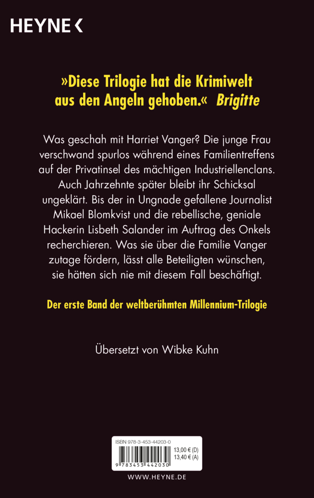 Wie alles begann. Der erste Band von Stieg Larssons Trilogie in moderner Neuausstattung Was geschah mit Harriet Vanger? Die junge Frau verschwand spurlos während eines Familientreffens auf der Privatinsel des mächtigen Industriellenclans. Auch Jahrzehnte späte...