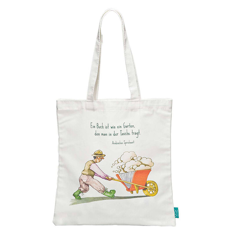 Machen Sie mit dem modischen Accessoire jeden Ihrer Einkäufe zu einem Erlebnis voller Freude. Das originelle Motiv und der beschwingte Spruch »Ein Buch ist wie ein Garten, den man in der Tasche trägt.« vereint die Bibliophilie mit der Freude am Gärtnern. Das h...